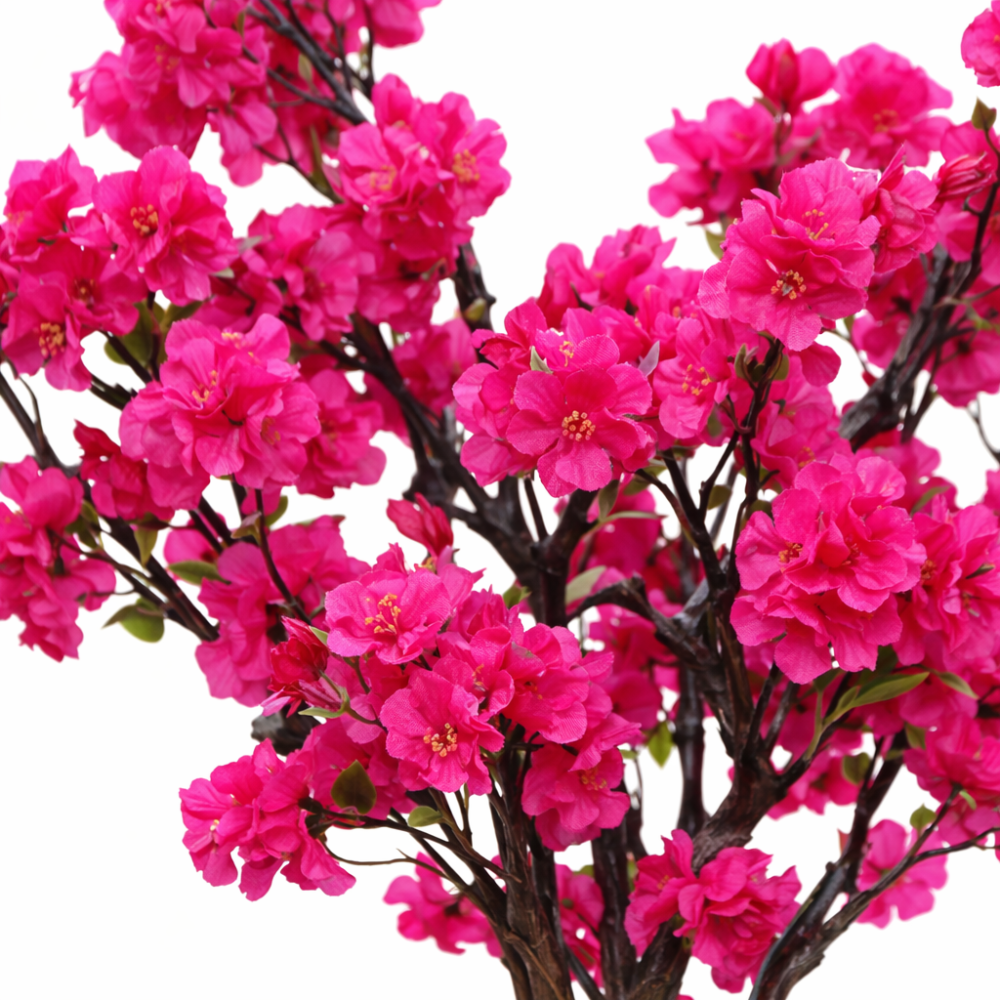 Deze prachtige bloesemboom is een echte blikvanger in huis. De sierlijke takken met volle bloesems in harde roze tinten brengen direct leven, kleur en elegantie in de ruimte. De natuurlijke vorm en verfijnde details geven de boom een realistische en hoogwaardige uitstraling.