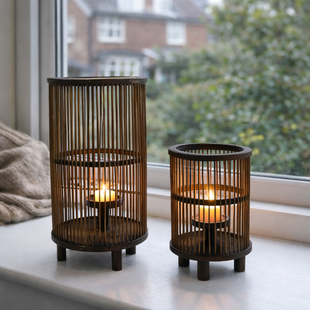 Lantaarn Rotan bruin set 2