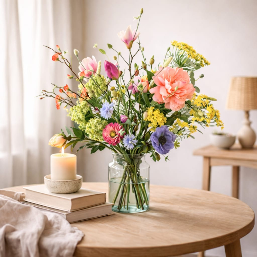 Spring is in the air - Zijden boeket - Zijden bloemen boeket - Boeket kleuren explosie - Groot Zijde boeket - L