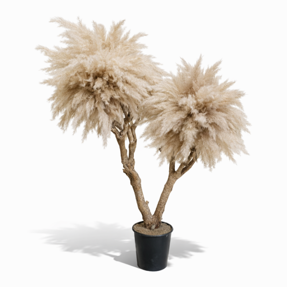 Stylingtip: Plaats de pampasboom in een lichte stenen of keramische pot voor een rustige, hoogwaardige look. Combineer met linnen stoffen en houttinten voor een harmonieus geheel.