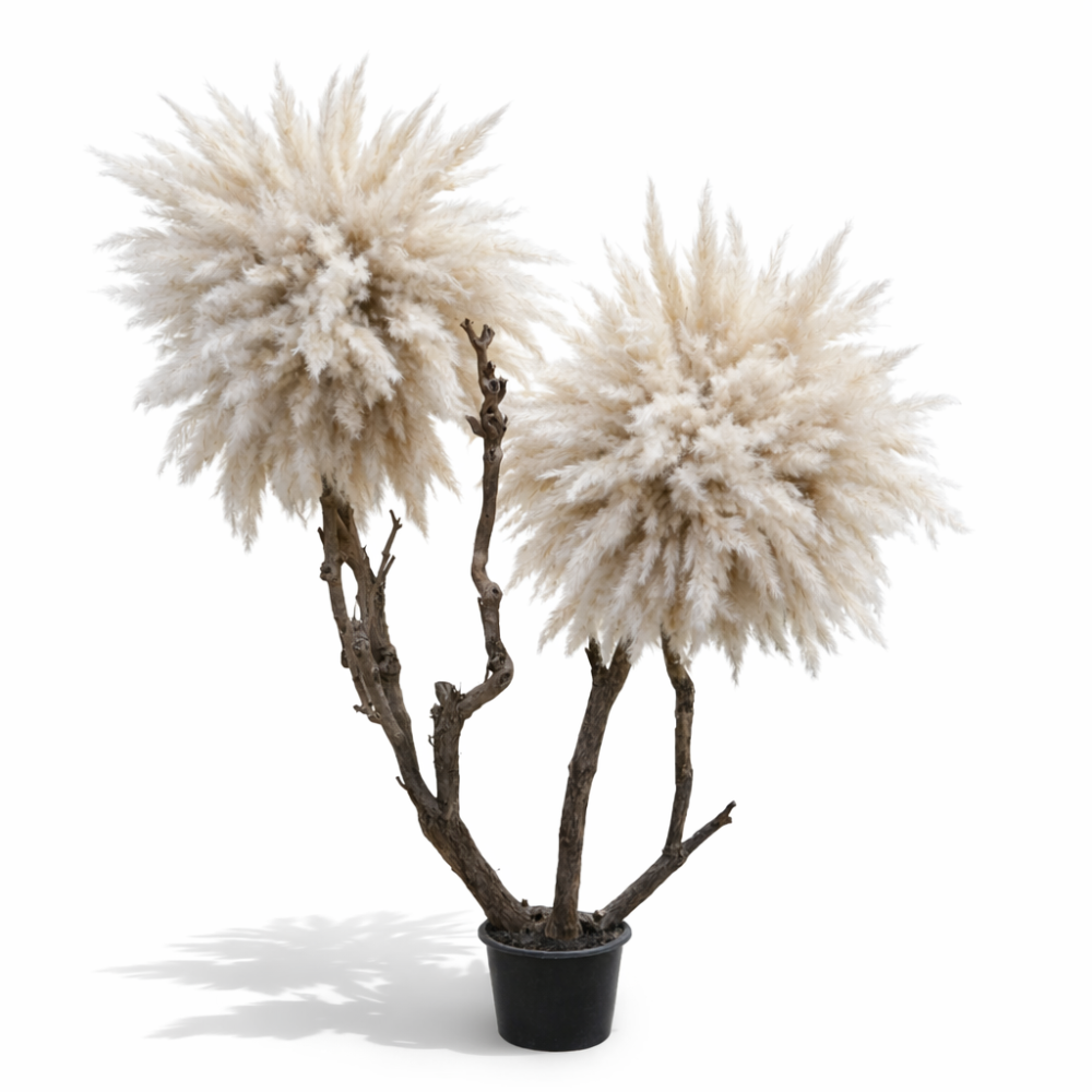 Stylingtip: Plaats de pampasboom in een lichte stenen of keramische pot voor een rustige, hoogwaardige look. Combineer met linnen stoffen en houttinten voor een harmonieus geheel