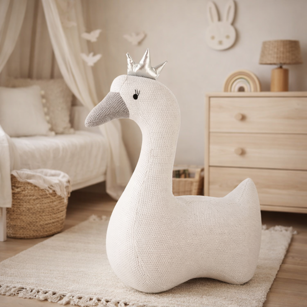 Zwaan met kroontje – decoratief knuffelobject voor de kinderkamer